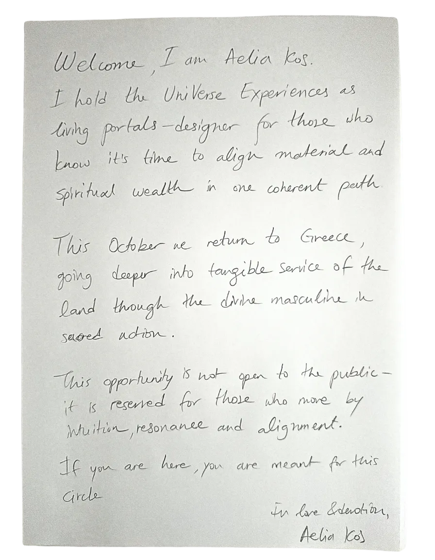 The UniVerse of Aelia Kos goes beyond what other clubs do, connecting true pioneers in business and spirituality who are willing to join forces to create a better world together. Their experiences are surprising joyous and deep at the same time, while business opportunities happen effortlessly throughout the year from their curated personal connections.